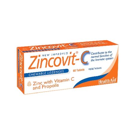 HealthAid Zincovit-C Tablets are formulated with a powerful combination of Zinc, Vitamin C, and Propolis, designed to support the body’s natural defenses. Zinc and Vitamin C are essential for a healthy immune system and help reduce tiredness and fatigue, while Propolis, a natural bee product, provides antioxidant and antimicrobial support.